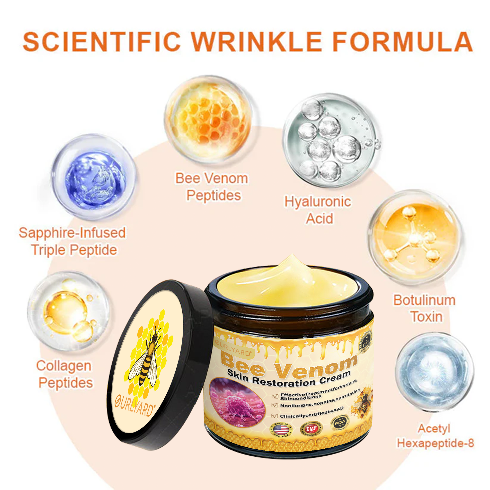 Ourlyard® Bee venom Comprehensive Cream addresses all the problems associated with sagging skin, wrinkles and more!